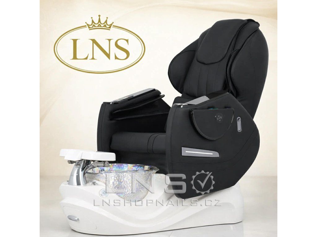 Luxuriöser schwarzer Pedikürestuhl LNS Prince William mit elegantem Design, intelligenter Massage und moderner pipeless Technologie. Perfekt für professionelle Salons.