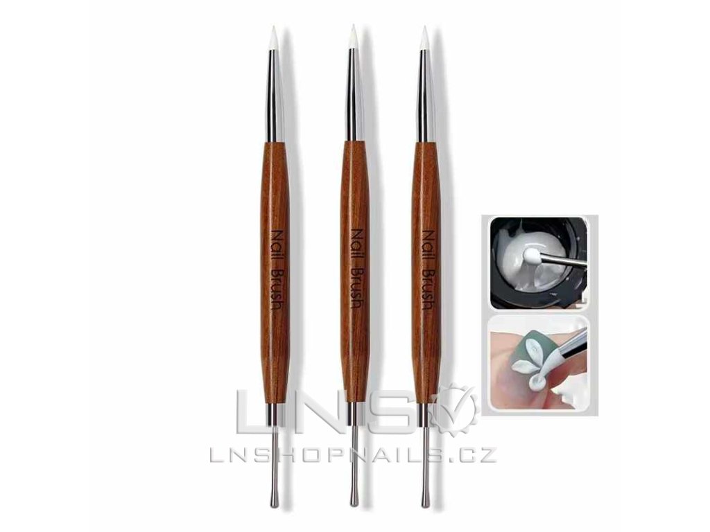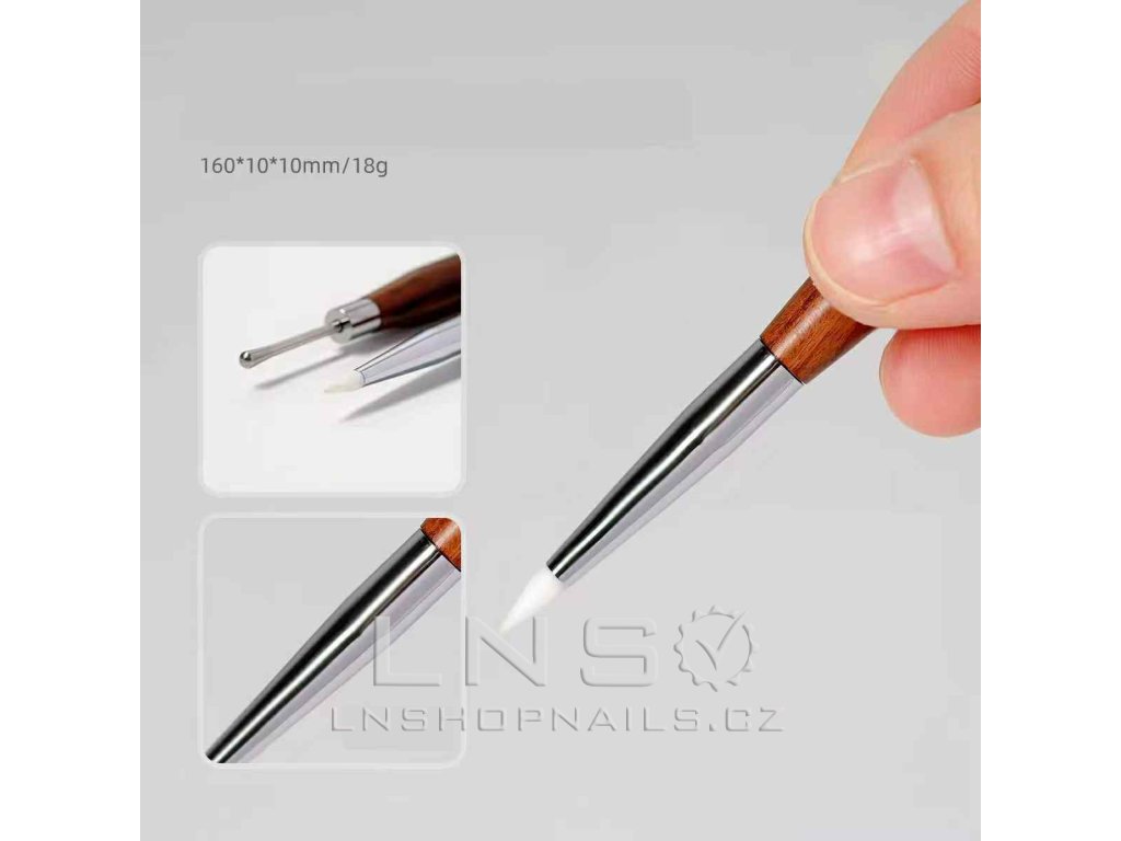 Kombinace kovového hrotu a silikonového zakončení umožňuje přesnou práci s gelem i akrylem.