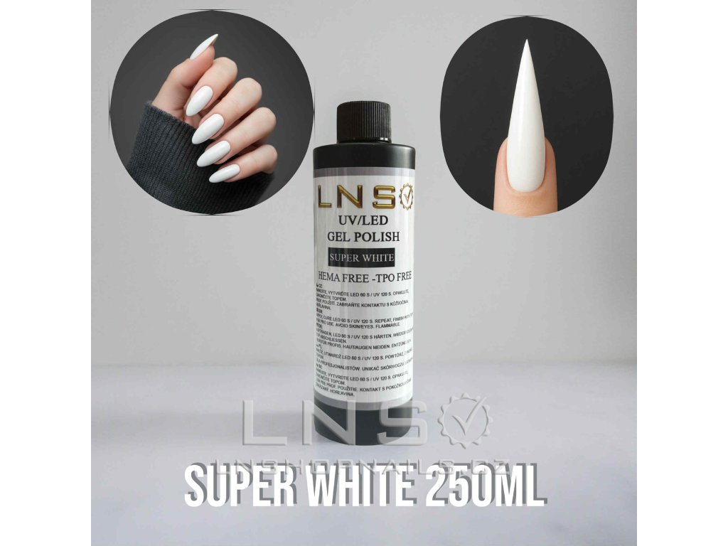 LNS Gellac Super White 15ml delivers an ultra-bright, pure white shade with excellent coverage in two thin coats. The TPO-free formula is safer for sensitive clients and ideal for continuous professional salon use. Its medium viscosity allows controlled application without streaking or bleeding. Perfect for French tips, full-cover white nails, nail art, and designs requiring a strong, clean white finish.