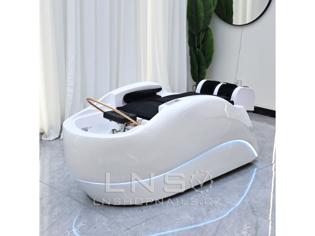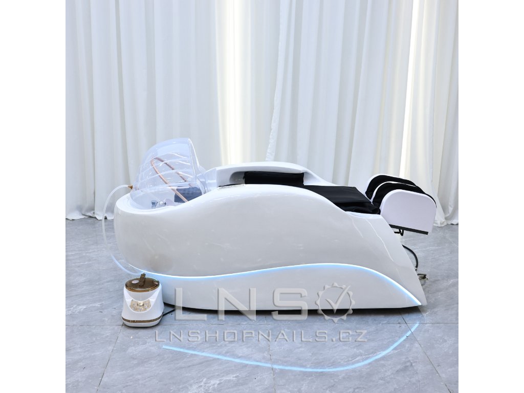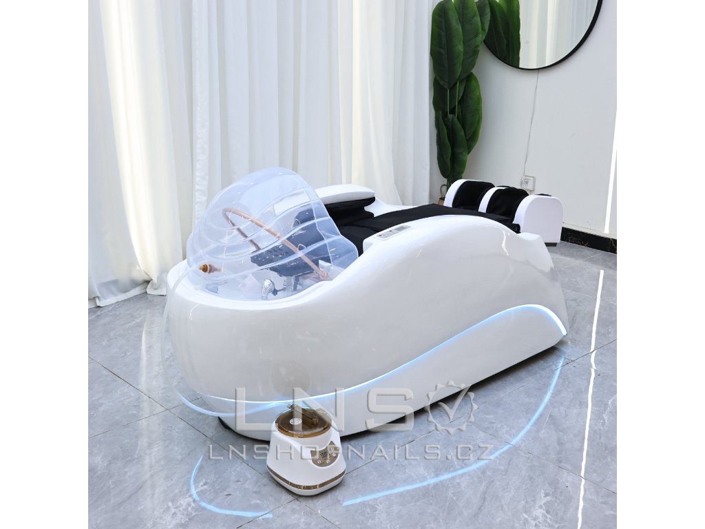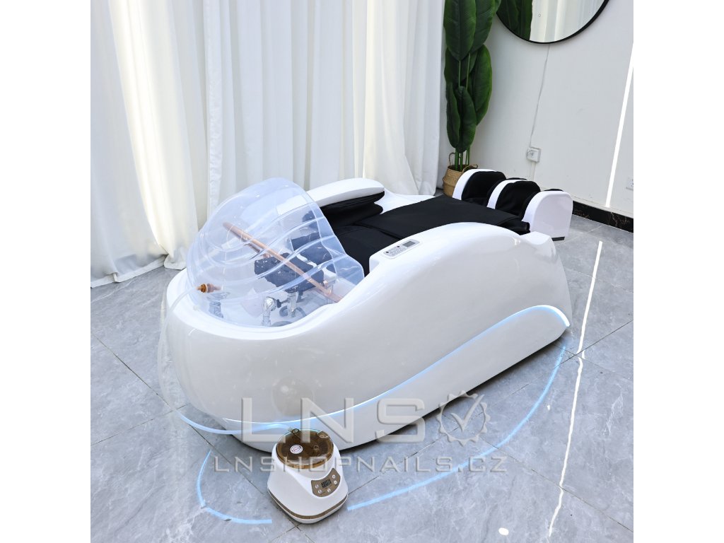Premium shampoo massage bed featuring 4D full-body massage, steam hair treatment, constant temperature water circulation, and a glazed ceramic basin. Perfect for head spa, salons, and wellness centers.