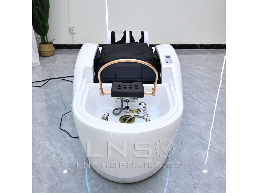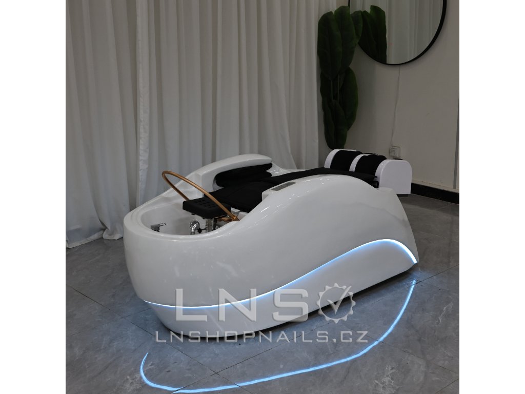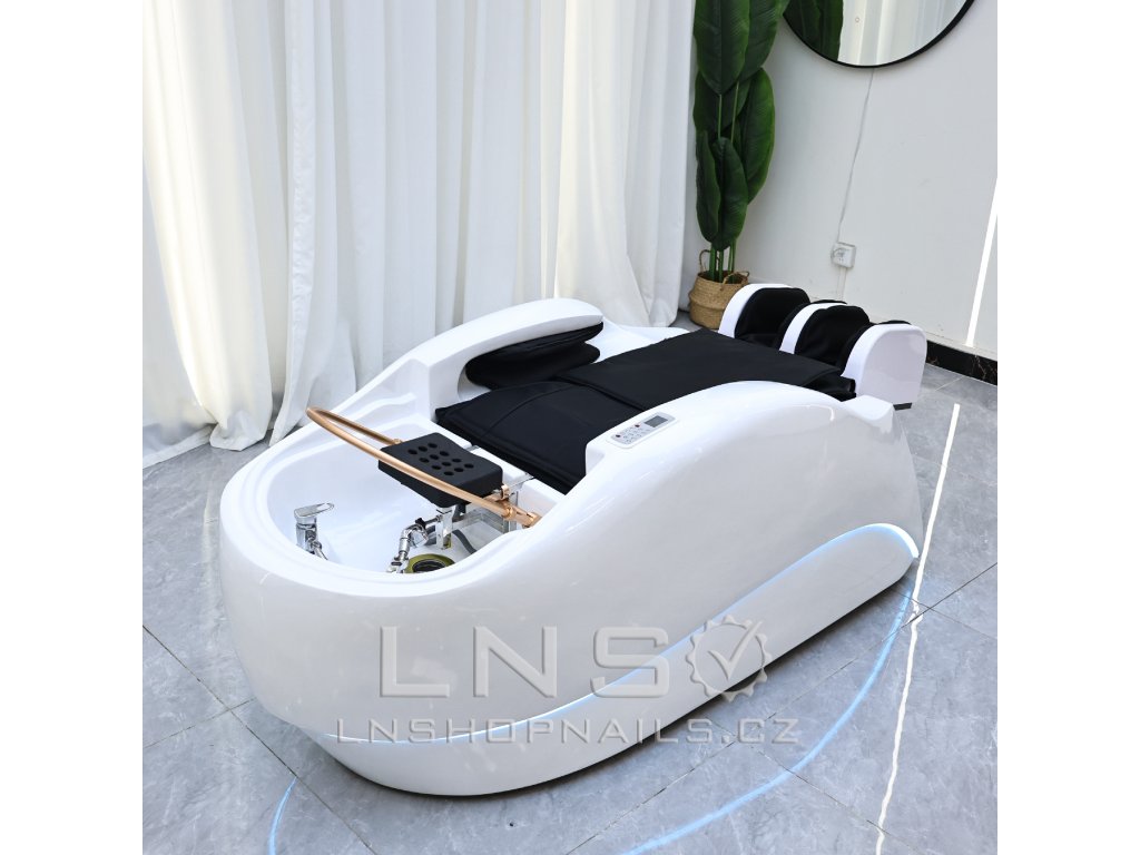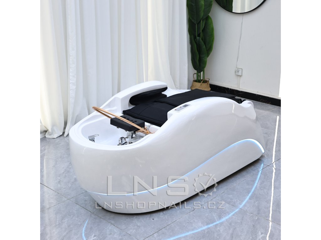 Premium shampoo massage bed featuring 4D full-body massage, steam hair treatment, constant temperature water circulation, and a glazed ceramic basin. Perfect for head spa, salons, and wellness centers.