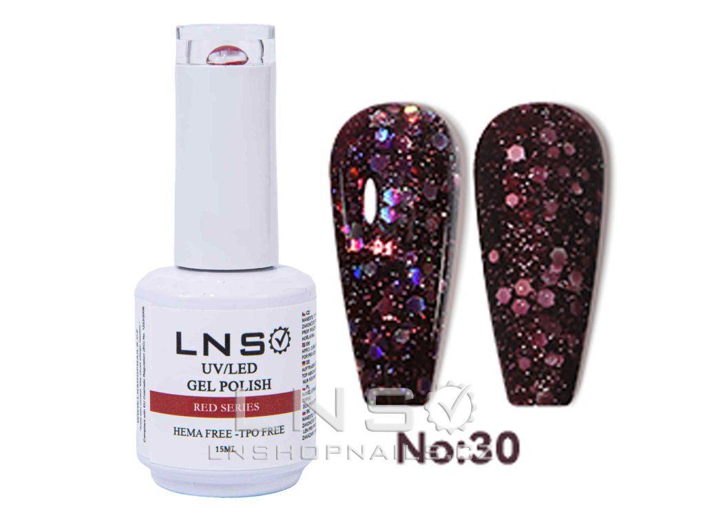 Gel lak LNS Red Series je profesionální UV/LED gelový lak s širokou škálou červených odstínů od jasně červené po tmavě vínovou a třpytivou. Ideální pro nehtová studia a moderní design.
