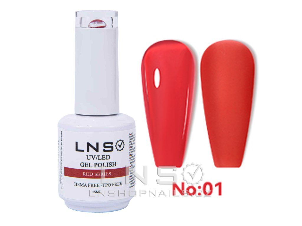 Gel lak LNS Red Series je profesionální UV/LED gelový lak s širokou škálou červených odstínů od jasně červené po tmavě vínovou a třpytivou. Ideální pro nehtová studia a moderní design.