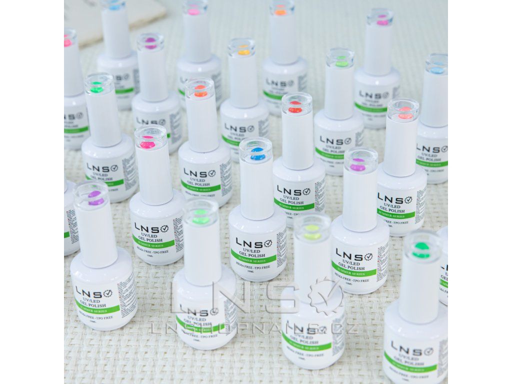 Gel lak LNS Summer Series je profesionální UV/LED gelový lak s jasnými a výraznými barvami vhodnými pro moderní nehtový design. Složení HEMA FREE – TPO FREE zajišťuje vyšší bezpečnost při používání v salonech.