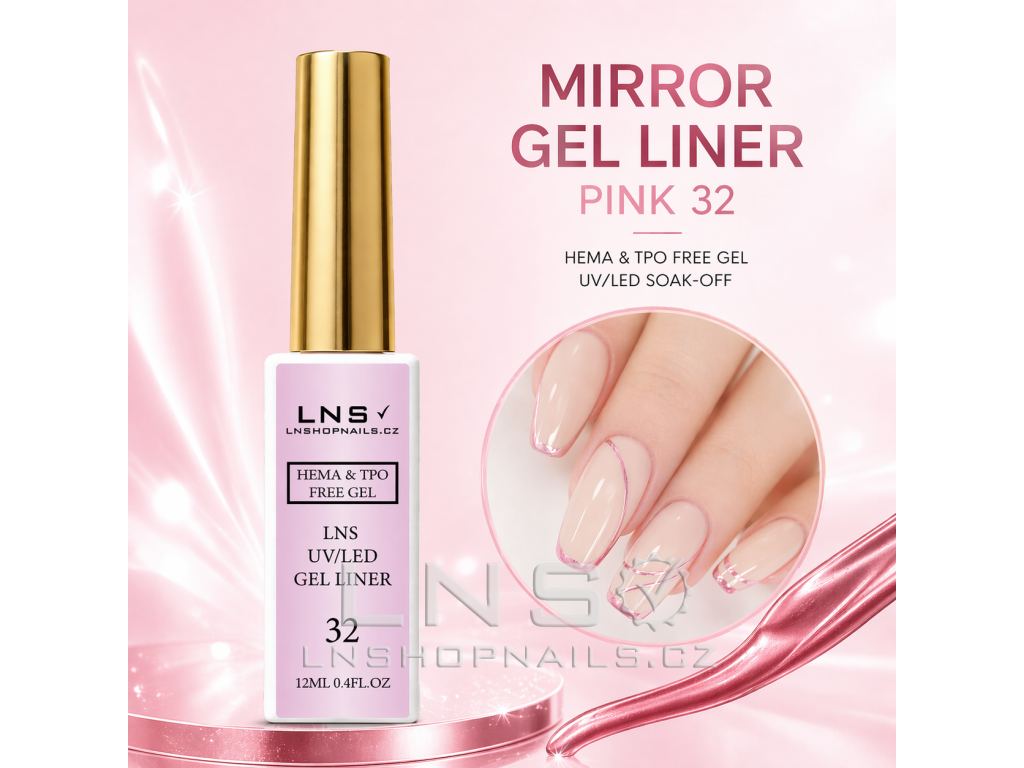 PINK METALIC 32 -Metalický Gel Liner LNS pro Nail Art | Mirror Effect