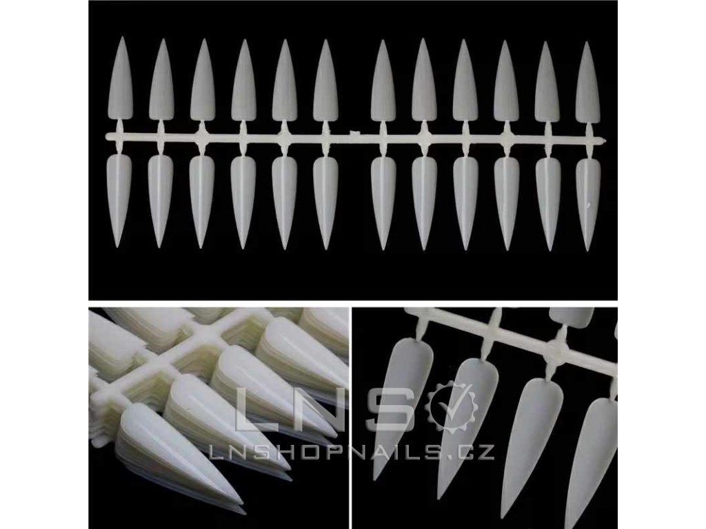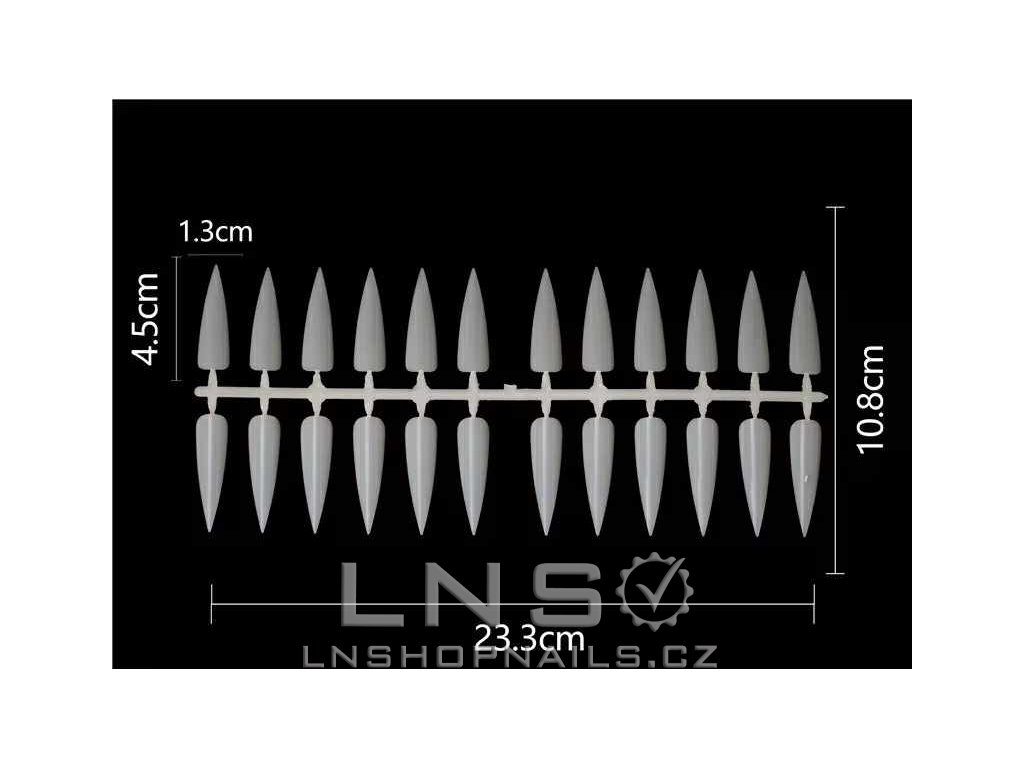 Umelé nechty v natural farbe so špicatým tvarom sú vhodné na testovanie farieb, prezentáciu vzorov a tréning nail artu. Natural odtieň zabezpečuje prirodzené zobrazenie farieb.